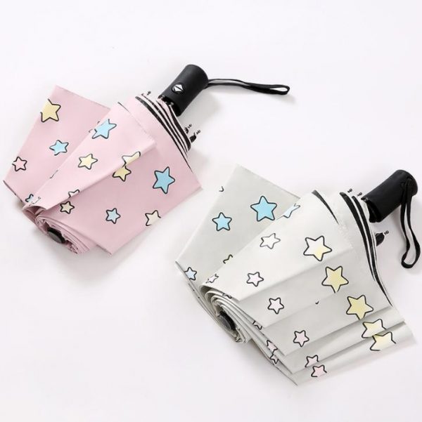 Umbrella material: high density impact cloth Umbilical material: glass fiber Umbrella handle material: rubber Umbrella density: 190T Number of ribs: 8 bones Open mode: automatic Opening size: 95*57cm Weight: 350g Color: black, white Features: 1. Use high-quality black lacquered steel bone to reinforce the details of the umbrella frame to make the umbrella body lighter…